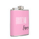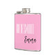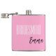 Flask for the bridesmaid is shown in pink with black and white text and has a sample name.