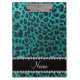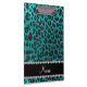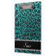 Custom name bright aqua glitter leopard print clipboard
