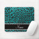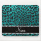Custom name bright aqua glitter leopard print mouse pad