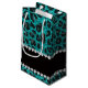 Modern,chic and trendy personalised custom name bright aqua glitter leopard spots pattern (animal print) with a beautiful black diamonds stripe (not real diamonds) with hearts and dots personalised with your name gifts or monogram gifts or your initials. Pretty girly leopard print gift ideas.