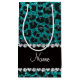 Custom name bright aqua glitter leopard print small gift bag