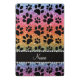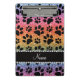 Custom name bright rainbow glitter black dog paws mini clipboard