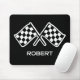 A custom name mouse pad for racing fans and lovers of speed! This editable template features winning checkered flags, and is personalize with a name, event, slogan, team name, or other text. A great gift for birthdays, holidays, Father's Day, Mother's Day, kids, or sports vehicle enthusiasts! Printed colors: black and white.