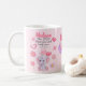 Customisable name and text pastel pink mug with a cute pink elephant with butterflies, flowers, and hearts, with a blessing Bible verse "The Lord bless you and keep you.", personalised gift for any occasion.