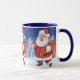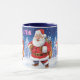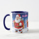 Custom name Christmas coffee mug, Jolly Santas. 2 tone dark blue.