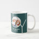 This stylish keepsake Christmas Holiday mug is decorated with the word JOY on a green background.