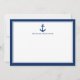 Nautical themed, personalised correspondence office note cards featuring your family name, company, event or other desired text in regal typography. This 2 sided unique design features a classic boat anchor with regal double boarder frames in navy blue and white.
