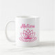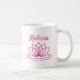 Custom name coffee mug with pink lotus flower. Personalised 11oz cup for him or her. Elegant floral logo design. Cute Birthday gift idea for yoga instructor, schol teacher, fitness trainer, meditation expert, mindfulness fan, coach, spiritual person, friends, family, wedding bride, co worker, colleague, boss and more. Peaceful icon design in customisable colour. Double sided print.