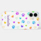 Custom Name Colourful Paw Print Pattern Case-Mate iPhone Case