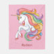 Custom Name Colourful Unicorn Fleece Blanket