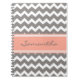 A beautiful spiral journal with elegant and modern peach orange pink, grey and white retro chevrons zigzags stripes pattern. Customise this notebook with your name or custom text.