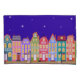 Cute Night City Single Pillowcase, Reversed. Night mediaeval city with a walking cat on the front side, and night sky with stars and with words "Sweet Dreams, Your Name" on the back side. Bold, colourful but cute and nice. Gender neutral, for all little dreamers.