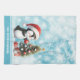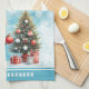 Custom Name Cute Penguin Snowy Blue Christmas Tea Towel