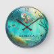 Custom Name Cute Turtle Ocean Background Kids Round Clock
