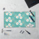 This floral desk mat is decorated with a daisy pattern on a turquoise background. Bright and cheerful and ready for you to personalise with your name.