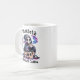 Custom Text Personalised Grim Reaper Coffee Mug - 'Dead Before Coffee' Funny Halloween Mug for Women - Perfect Gift for Coffee Lovers & Spooky Enthusiasts. This unique coffee mug features a playful watercolor illustration of a cute Grim Reaper drinking coffee inside a skull, surrounded by smaller skulls. The vibrant design combines teal, pink, purple, and black, creating a bold and spooky look. Personalise this Halloween mug by adding the recipient's name for a one-of-a-kind gift. Ideal for birthdays, anniversaries, Halloween, or any occasion for those who love coffee and all things spooky, dark, and macabre. All text is editable.