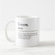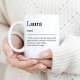 Create your own one-of-a-kind personalised name coffee mug with the name definition of your favourite person, best friend, your mum, your dad or siblings, your husband or wife, grandma or grandpa... Modern dictionary style custom name definition, black typography and clean and simple design. A personalised gift idea for your best friend, colleague or family member. Put the first name and your very own dictionary description to make a unique meaningful gift for birthdays, anniversaries, mothers day, Christmas, really any occasion. Make it sound official or give it a funny twist and enjoy the look on the face when it gets unwrapped.