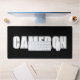 Custom name desk mat for computer table or counter. Personalise with your own name, business name, logo etc. Black and white or custom colours. Modern template design with bold typography.
