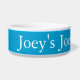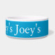 Dog bowl shown in white & blue with a dogs name,customise this item and change the name to your pets name.
