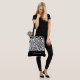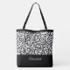 Elevate your everyday style with this elegant black and white fashion tote bag. The design features a refined leaf‑and‑vine pattern on a crisp white background, paired with bold black trim for a classic look. Personalise the front with your name or initials in feminine white script calligraphy using the easy template — just replace the letters between the rectangles to keep the stylish first‑and‑last‑letter effect.