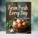 Decorate your kitchen with this farmhouse eggs wall art print. Featuring rustic line art of eggs in a basket and the editable quote “Farm Fresh Every Day – [Name]’s Kitchen”, it makes a warm and inviting farmhouse-inspired wall décor piece. Perfect for kitchens, dining rooms, and rustic cafés.