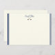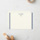 Custom name flat note card shown in ivory with a slim navy blue double border trim also with a golf inspired winners wreath print.