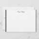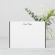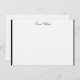 Custom name flat note card shown in the white linen paper with a slim black border trim.