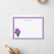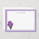 Custom Name Flat Note Card is shown in white with a purple double border trim and a lovely purple crocus flowers print.