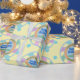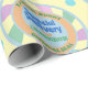 This whimsical gift wrapping paper features a cute and colourful Easter theme on a soft yellow coloured background with blue polka dots. A pastel coloured swirl pattern borders the sticker in shades of pink, green, blue, and purple over a soft yellow background. The title "Easter Bunny Official Seal" is printed in a green font over an orange banner, to resemble an official seal. The Special Delivery label is printed in the centre, followed by a sample name which you can personalise to include your own custom name or text.