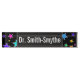 This fun, multicolored desk nameplate design features a pattern of star shapes of various sizes and coloured a variety of colours on a black background. It also features a personalised name in white coloured text within a dark coloured area. It could perhaps be used on the desk of a teacher, educator, professor, doctor, lawyer, or some other professional. [~Z0000047]