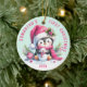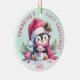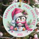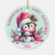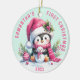 Custom Name Fun Penguin Pink Mint First Christmas Ceramic Ornament