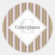 Custom Name Geometric Warm Neutral Candy Stripes Classic Round Sticker