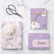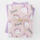 Custom Girl's Name Cute Unicorn Birthday wrapping paper set in pink and lilac colours. Edit name with easy to use Zazzle tool.
