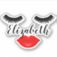A cute and girly design featuring big eyelashes and bright red lips with a custom name in the middle. A cute gift for an aesthetician or makeup lover.