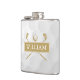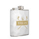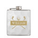Custom Name Gold And White Clubs And Ball Hip Flask