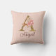 Custom Name Gold Foil Blush Pink Roses Letter A Cushion