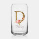 Custom Name Gold Foil Blush Pink Roses Letter D Can Glass