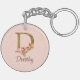 Custom Name Gold Foil Blush Pink Roses Letter D Key Ring