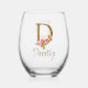Custom Name Gold Foil Blush Pink Roses Letter D Stemless Wine Glass