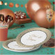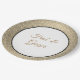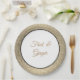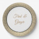 Party paper plate shown in a lovely Gold fine faux glitter print around the rim and White centre. Your personalised names in a fancy script in centre.