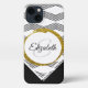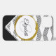 This eye catching black and white zig zag design sets off the top of this gift idea phone cover featuring a gold faux glitter oval with name and initial letter monogram template text over a black bottom. Fill in the template field, remove one of the text elements or edit using the design tool to select a font style, size, and colour you like.