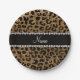 Custom name gold glitter leopard print paper plate