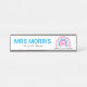 Pretty, pastel rainbow, name plate with the words "teach, love, inspire" and room to personalise it with name and title. The custom nameplate is perfect for principals, teachers, and other educational professionals who would like to grace their desks with beautiful artwork. The design makes a lovely, unique and personal gift for all occasions.