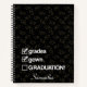 This spiral notebook features the text "Grades, gown, Graduation" with a background of graduation caps. you can customised and put the graduates' name.