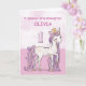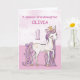 A sweet pink pony just like your granddaughter is prancing with the number one! Gold looking details are woven in her mane and tail. Perfect card to wish your granddaughter her 1st birthday! You can personalise the name on this card.