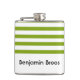The flask itself is fine. It’s a cheap flask, obviously bought in bulk, however am prepared to overlook that. Given that it is a personalized item, I would have liked to have seen gift boxing instead of the generic packaging. Terrible printing, and/or quality. It’s a cheap, tacky vinyl. It is not cut straight and is also applied in a way that it is overhanging the bottom, causing the glue to catch on items and it will eventually roll and tear, damaging the wrap.