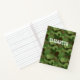 Show your unique style with this Custom Name Camouflage notebook. This design classic green camouflage print with a spot to customise the front text. Just enter in your own name or text or hit the Customise button if you need to make any font, size, colour or style changes. Makes a great gift! This design is also available on stickers, binders, and gift wrap.