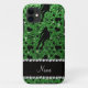 Modern, girly, chic and trendy Custom name green glitter (NOT REAL GLITTER) roller derby girl silhouettes, roller skates, stars, hearts and bows ribbons pattern background and with pretty black diamonds (faux not real diamonds) with sparkly hearts and dots stripe personalised with just add your name gifts or monogram gifts or your initials for a unique gift. Roller derby gift ideas for women and girls. Ideal for roller skating girls / women.