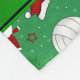 Modern and trendy Custom name sports green volleyball balls, santa claus, green christmas trees, red, green and yellow stars, white snowflakes, snow, santa hats pattern background and green stripe personalised with just add your name gifts or monogram gifts or your initials for a unique gift. Sports gift ideas for men and boys and girls. Ideal for christmas presents.