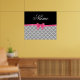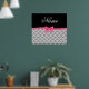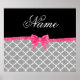 Custom name grey moroccan pattern pink glitter bow poster
